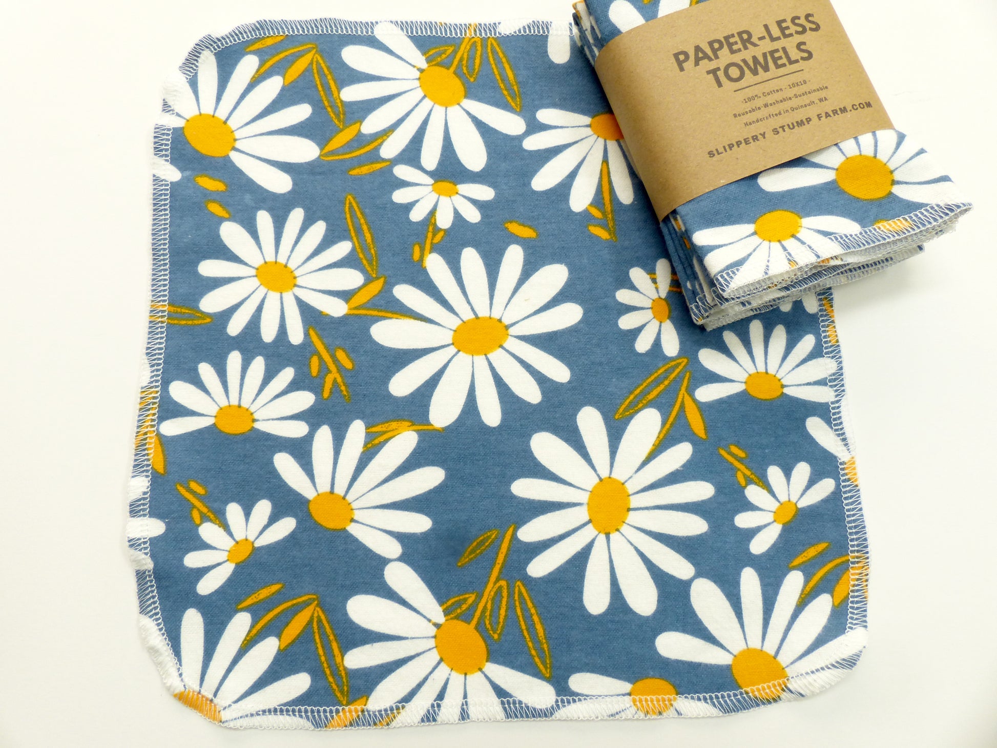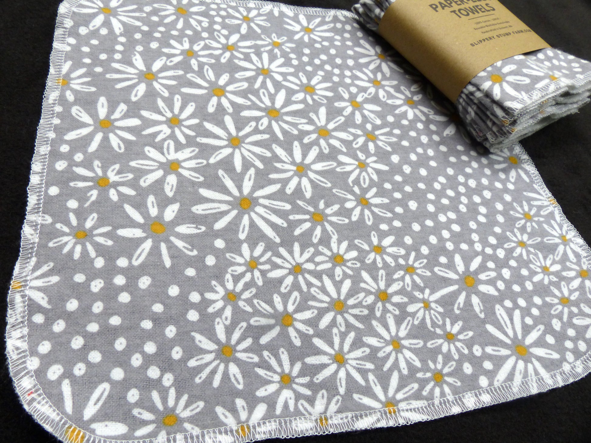 Made with cotton flannel fabric available in many fun prints. Each Paper LESS towels is handmade at Slippery Stump Farm, in the USA, Washington State.